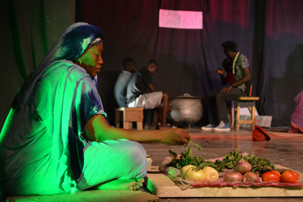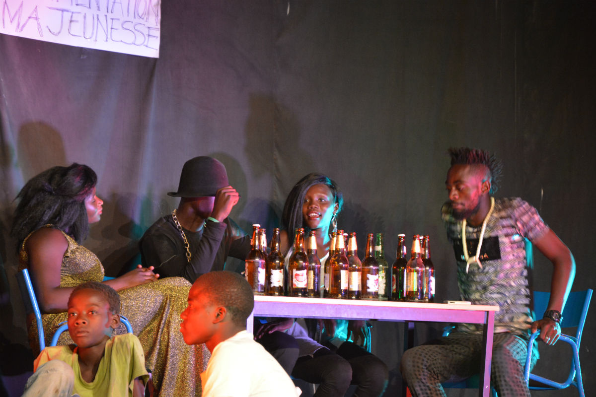 Stories about ‘drinking’ were sometimes a vehicle for voicing political critique. When I attended a concert of Ray’s Kim, a socially engaged hip-hop artist who sings in Bunda, the language of street children (see video below), I was struck by his stage décor. It was a reflection of Dembé market, one of the largest markets in N’Djaména. On the left and right side of the stage were a woman selling vegetables and a small boy selling soap. In the middle of the scene, there were two other elements: cabaret ‘sans soucis’, manned by street children seated on wooden benches and on the floor, drinking from calabashes; and alimentation ‘ma jeunesse’ [An alimentation is a bar where one can buy industrially produced beer], where nicely dressed-up youth were sitting around a table with many beer bottles. When I asked Ray’s Kim after the concert about his stage décor, he explained that it reflected the situation of Chadian youth. One part lives in absolute poverty, does not own anything, lives on the streets, and drinks away their worries in local bars—hence cabaret ‘sans soucis’ (‘without worries’). Another part is educated, but they cannot find work or money for further education. They have nothing to do besides drinking; they spend their time and the little money they have (from family) in bars. By choosing this ‘everyday image’ of Dembé market as a scene for his socially and politically engaged concert, Ray’s Kim problematized the ‘normal’ drinking behaviour of youth and used it as a metaphor for and a critique of the current social, political, and economic situation. In his lyrics, he called upon the government as well as the Chadian population to take up responsibility (personal communication with Ray’s Kim, field notes, 15/04/2016).